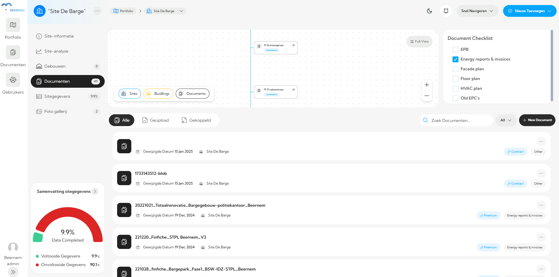 In our platform you can centralize your building data, from available public data to important contracts and more. This data is digitalized and structure to enable data analytics on it, to create transparency, to identify actions and issues, to create reports on metrics related to ESG, finance or compliancy.