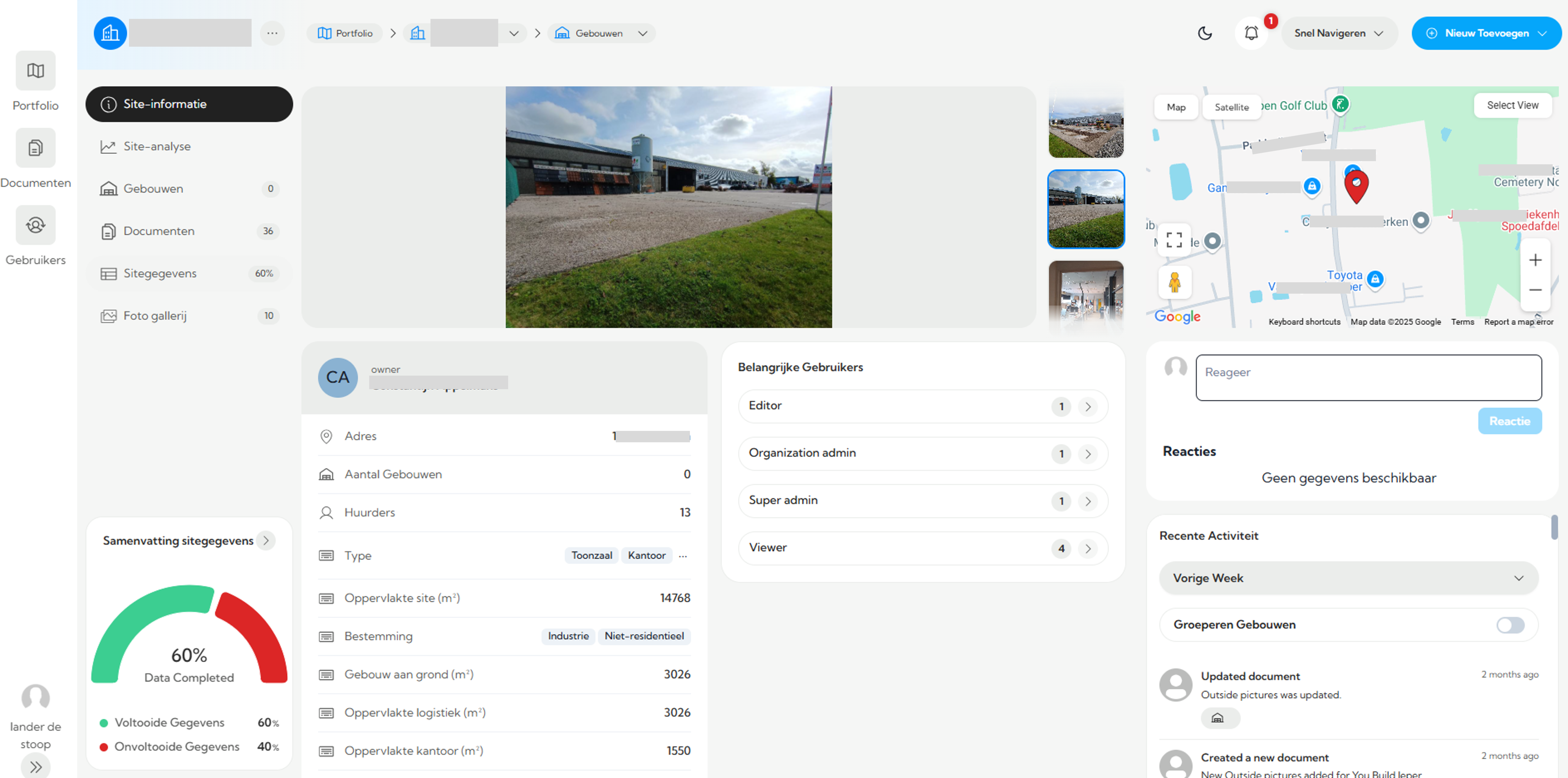 A map overview of your owned lands, sites and buildings with possibility to search and drill-down to specific pieces of real estate.